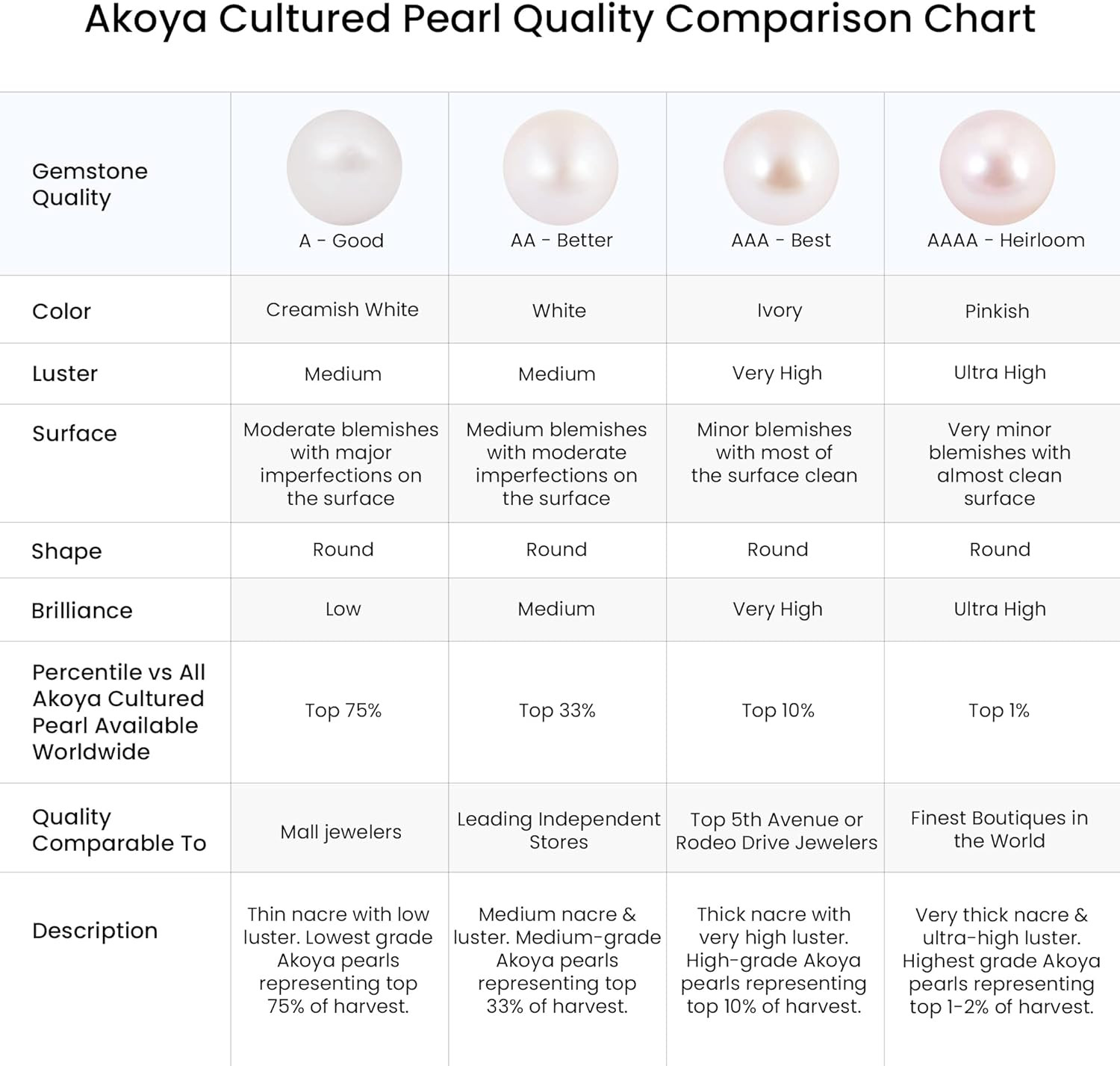 Akoya cultured pearls are the June birthstone and a traditional gemstone gift for 3rd, 30th, 46th, 50th and 52nd wedding anniversaries. Known for their near-perfect round shape and brilliant mirror luster, Akoya cultured pearls are the perfect expression of elegance. This elegant and lustrous pearl is usually white with shades of pink, ivory or silver, making it one of the most popular pearls of all time.