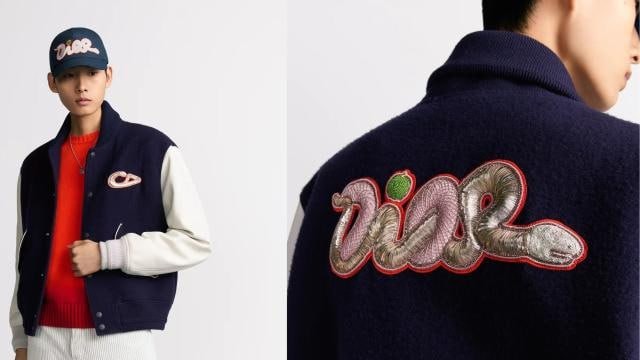 DIOR AND KAWS Varsity Jacket Blue wool and cashmere with beige leather | DIOR