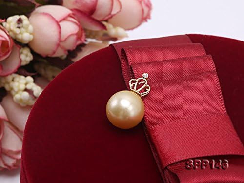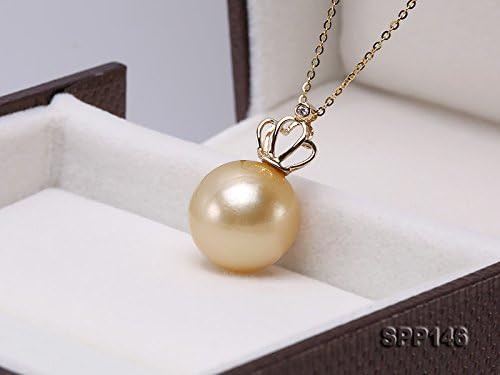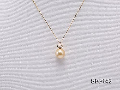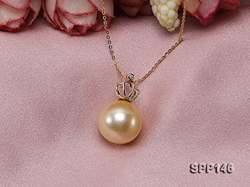 JYX Pearl 14K Yellow Gold Crown Pendant 12mm Round Golden South Sea Pearl Pendant Seawater Necklace