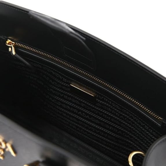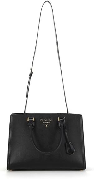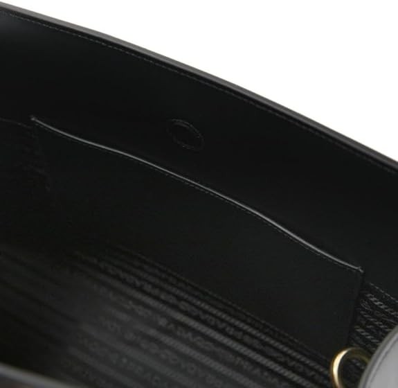 • Color: Black. Saffiano Lux leather. Soft calf leather details. Gold-tone hardware. Prada Milano logo. Four protective metal purse feet. Detachable keyring clochette. Magnetic snap closure. Interior black jacquard fabric. Interior zipper pocket. Interior patch pocket.