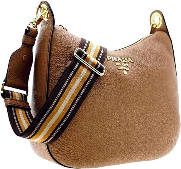 Prada Women's Tan Leather Medium Web Stripe Strap Crossbody Bag 1BC166