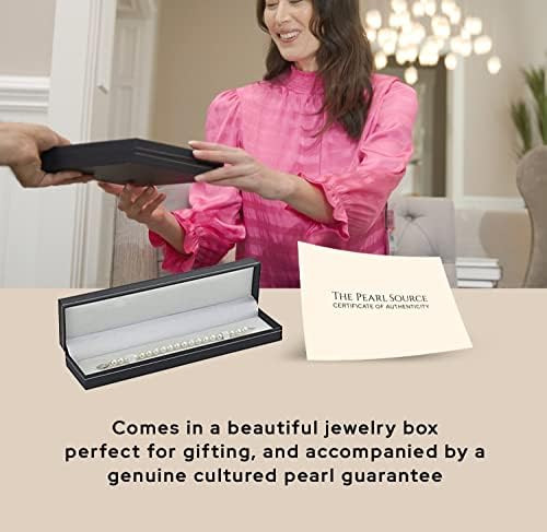 The Pearl Source White Freshwater Pearl Bracelet for Women - Cultured Pearl Bracelet with 14k Gold Plated Clasp with Genuine Cultured Pearls, 7.0-7.5mm
